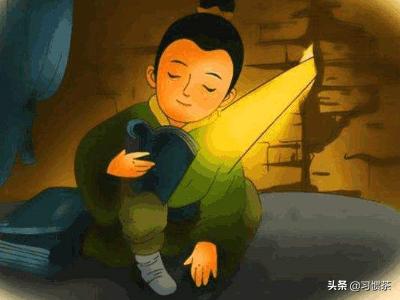 车胤,年幼时好学不倦,勤奋刻苦他白天帮大人于活,夜晩便捧书苦读。可是由于家境贫寒,常常没钱买油灯,书也读不成了,他为此十分苦恼。一个夏夜的晚上,车胤坐在院子里默默回忆着读过的书上的内容,忽然发现院子里有许多萤火虫一闪一闪地在空中飞舞。他忽然心中一动,要是把这些萤火虫聚集在一起,借它们的光不就可以读书吗?于是,他开始捉萤火虫,捉了十几只,把它们装在白纱布缝制的口袋里,挂在案头。从此,他每天借着萤光苦苦地读书。